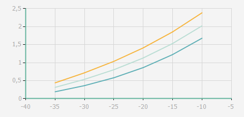 蒸發溫度 | 制冷量+/-5% | 能耗+/-5% | 現在能效+/-5% | 氣體流速+/-5% | 能效+/-7% | ||||