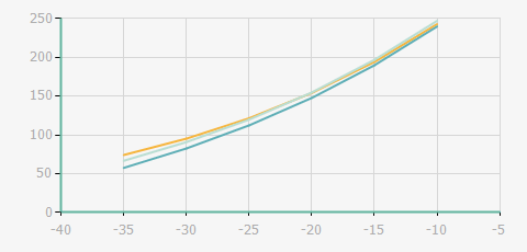 蒸發溫度 | 制冷量+/-5% | 能耗+/-5% | 現在能效+/-5% | 氣體流速+/-5% | 能效+/-7% | ||||