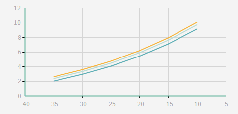 蒸發(fā)溫度 | 制冷量+/-5% | 能耗+/-5% | 現(xiàn)在能效+/-5% | 氣體流速+/-5% | 能效+/-7% | ||||