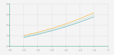 蒸發溫度 | 制冷量+/-5% | 能耗+/-5% | 現在能效+/-5% | 氣體流速+/-5% | 能效+/-7% | ||||