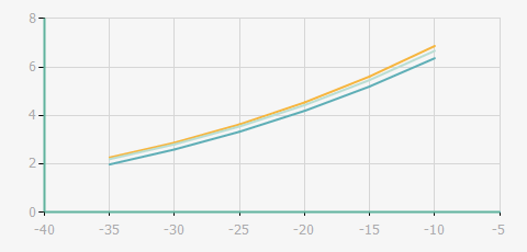 蒸發溫度 | 制冷量+/-5% | 能耗+/-5% | 現在能效+/-5% | 氣體流速+/-5% | 能效+/-7% | ||||