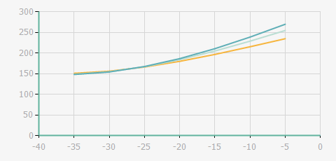 蒸發溫度 | 制冷量+/-5% | 能耗+/-5% | 現在能效+/-5% | 氣體流速+/-5% | 能效+/-7% | ||||