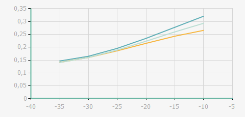 蒸發(fā)溫度 | 制冷量+/-5% | 能耗+/-5% | 現(xiàn)在能效+/-5% | 氣體流速+/-5% | 能效+/-7% | ||||