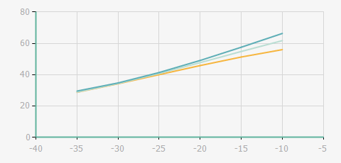 蒸發(fā)溫度 | 制冷量+/-5% | 能耗+/-5% | 現(xiàn)在能效+/-5% | 氣體流速+/-5% | 能效+/-7% | ||||