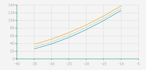 蒸發溫度 | 制冷量+/-5% | 能耗+/-5% | 現在能效+/-5% | 氣體流速+/-5% | 能效+/-7% | ||||