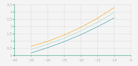 蒸發溫度 | 制冷量+/-5% | 能耗+/-5% | 現在能效+/-5% | 氣體流速+/-5% | 能效+/-7% | ||||