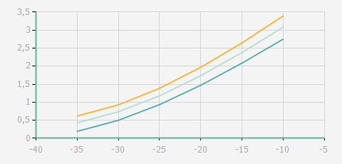 | 蒸發(fā)溫度 | 制冷量+/-5% | 能耗+/-5% | 現(xiàn)在能效+/-5% | 氣體流速+/-5% | 能效+/-7% | ||||