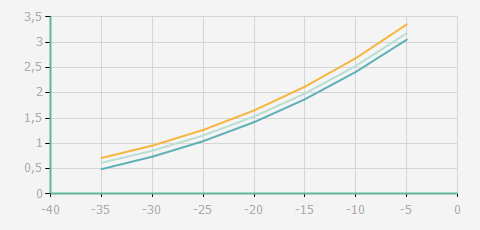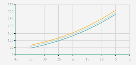 蒸發(fā)溫度 | 制冷量+/-5% | 能耗+/-5% | 現(xiàn)在能效+/-5% | 氣體流速+/-5% | 能效+/-7% | ||||