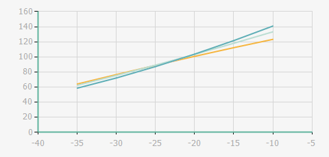 蒸發溫度 | 制冷量+/-5% | 能耗+/-5% | 現在能效+/-5% | 氣體流速+/-5% | 能效+/-7% | ||||