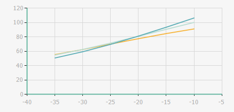 蒸發(fā)溫度 | 制冷量+/-5% | 能耗+/-5% | 現(xiàn)在能效+/-5% | 氣體流速+/-5% | 能效+/-7% | ||||