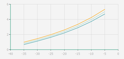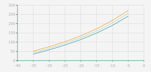 蒸發溫度 | 制冷量+/-5% | 能耗+/-5% | 現在能效+/-5% | 氣體流速+/-5% | 能效+/-7% | ||||