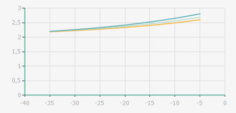 蒸發溫度 | 制冷量+/-5% | 能耗+/-5% | 現在能效+/-5% | 氣體流速+/-5% | 能效+/-7% | ||||