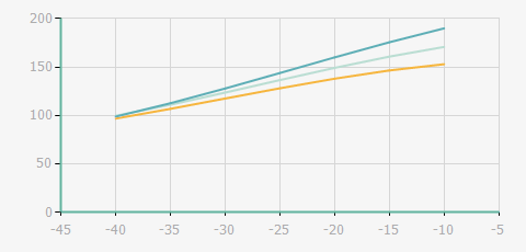 蒸發(fā)溫度 | 制冷量+/-5% | 能耗+/-5% | 現(xiàn)在能效+/-5% | 氣體流速+/-5% | 能效+/-7% | ||||