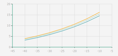 蒸發溫度 | 制冷量+/-5% | 能耗+/-5% | 現在能效+/-5% | 氣體流速+/-5% | 能效+/-7% | ||||
