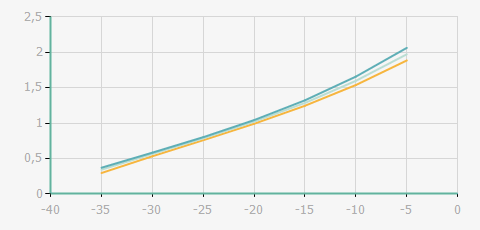 蒸發溫度 | 制冷量+/-5% | 能耗+/-5% | 現在能效+/-5% | 氣體流速+/-5% | 能效+/-7% | ||||