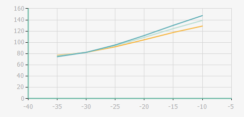 蒸發溫度 | 制冷量+/-5% | 能耗+/-5% | 現在能效+/-5% | 氣體流速+/-5% | 能效+/-7% | ||||