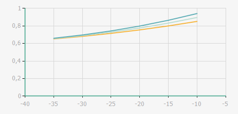 蒸發溫度 | 制冷量+/-5% | 能耗+/-5% | 現在能效+/-5% | 氣體流速+/-5% | 能效+/-7% | ||||