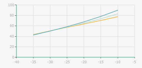 蒸發(fā)溫度 | 制冷量+/-5% | 能耗+/-5% | 現(xiàn)在能效+/-5% | 氣體流速+/-5% | 能效+/-7% | ||||