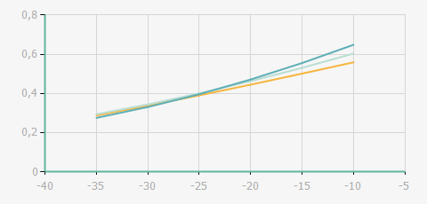 蒸發(fā)溫度 | 制冷量+/-5% | 能耗+/-5% | 現(xiàn)在能效+/-5% | 氣體流速+/-5% | 能效+/-7% | ||||