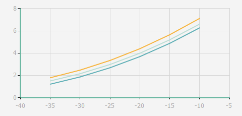 蒸發溫度 | 制冷量+/-5% | 能耗+/-5% | 現在能效+/-5% | 氣體流速+/-5% | 能效+/-7% | ||||