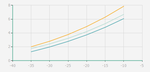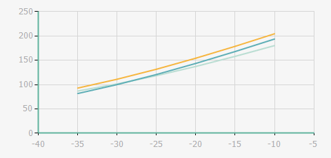 蒸發溫度 | 制冷量+/-5% | 能耗+/-5% | 現在能效+/-5% | 氣體流速+/-5% | 能效+/-7% | ||||