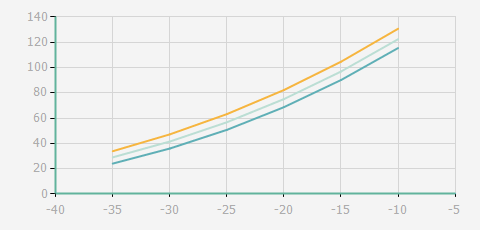 蒸發(fā)溫度 | 制冷量+/-5% | 能耗+/-5% | 現(xiàn)在能效+/-5% | 氣體流速+/-5% | 能效+/-7% | ||||
