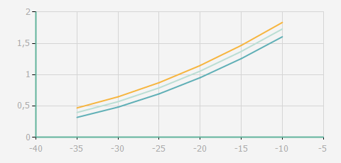 蒸發溫度 | 制冷量+/-5% | 能耗+/-5% | 現在能效+/-5% | 氣體流速+/-5% | 能效+/-7% | ||||
