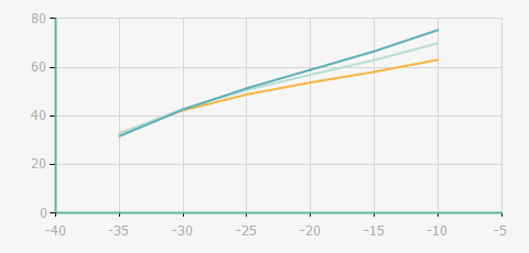 蒸發(fā)溫度 | 制冷量+/-5% | 能耗+/-5% | 現(xiàn)在能效+/-5% | 氣體流速+/-5% | 能效+/-7% | ||||