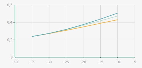 蒸發溫度 | 制冷量+/-5% | 能耗+/-5% | 現在能效+/-5% | 氣體流速+/-5% | 能效+/-7% | ||||