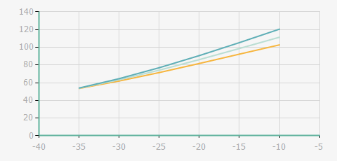 蒸發(fā)溫度 | 制冷量+/-5% | 能耗+/-5% | 現(xiàn)在能效+/-5% | 氣體流速+/-5% | 能效+/-7% | ||||