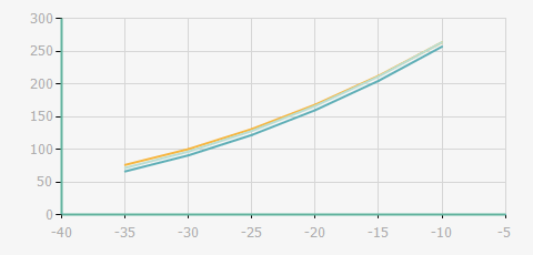蒸發(fā)溫度 | 制冷量+/-5% | 能耗+/-5% | 現(xiàn)在能效+/-5% | 氣體流速+/-5% | 能效+/-7% | ||||