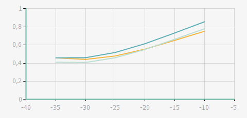 蒸發溫度 | 制冷量+/-5% | 能耗+/-5% | 現在能效+/-5% | 氣體流速+/-5% | 能效+/-7% | ||||