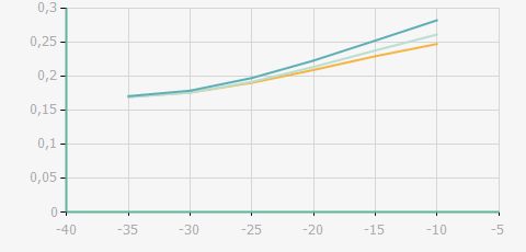 蒸發(fā)溫度 | 制冷量+/-5% | 能耗+/-5% | 現(xiàn)在能效+/-5% | 氣體流速+/-5% | 能效+/-7% | ||||