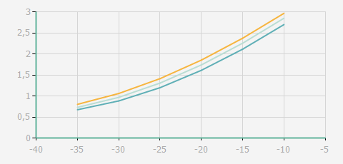 蒸發溫度 | 制冷量+/-5% | 能耗+/-5% | 現在能效+/-5% | 氣體流速+/-5% | 能效+/-7% | ||||