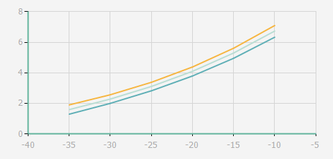 | 蒸發溫度 | 制冷量+/-5% | 能耗+/-5% | 現在能效+/-5% | 能效+/-7% | ||||