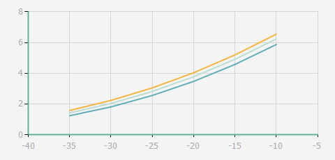 蒸發溫度 | 制冷量+/-5% | 能耗+/-5% | 現在能效+/-5% | 氣體流速+/-5% | 能效+/-7% | ||||
