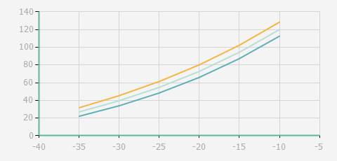 蒸發溫度 | 制冷量+/-5% | 能耗+/-5% | 現在能效+/-5% | 氣體流速+/-5% | 能效+/-7% | ||||